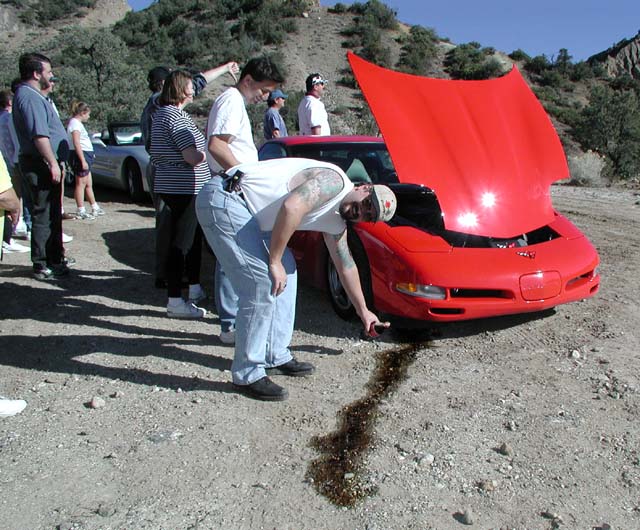That rock put a hole in the oil pan. OUCH!