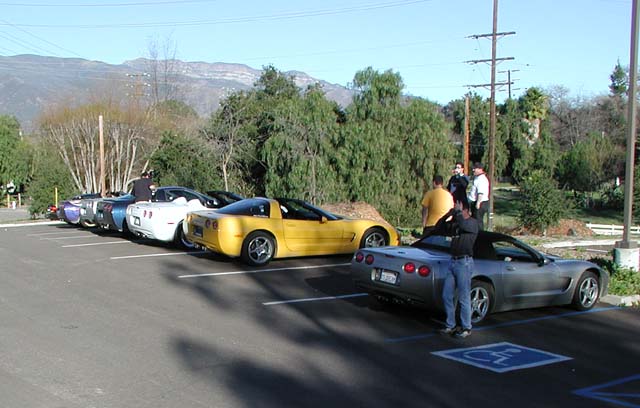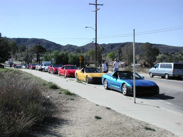 Bryan started this thing right after the 2000 Holidays on the Corvette Forum. It started out slow, then as the date (Feb. 4, 2001) drew near interest mushroomed as usual. Bryan and Allen worked out the route and took several "scouting runs" to make sure all participants would have a good time. The group came from all over the southern half of California. From Imperial Beach which is almost on the Mexican border to San Jose.